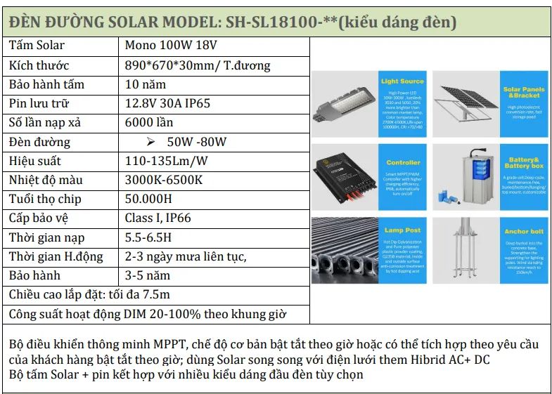 Đèn đường năng lượng mặt trời 50W- 80W